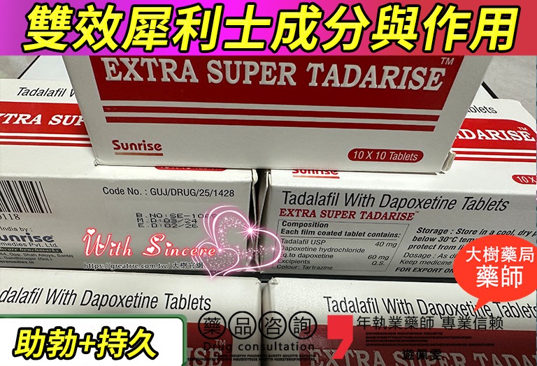 雙效犀利士屬於處方等級複方藥物,含有治療勃起功能障礙與早洩的活性成分。使用前應由醫師或藥師依據您的年齡、健康狀況(如高血壓、心臟病等)給予正確建議,避免自行服用不適劑量。