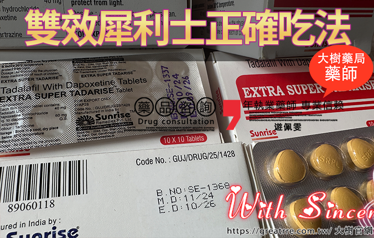 雙效犀利士(Super Tadarise)是一款由印度桑瑞(Sunrise)藥廠研製的犀利士學名藥,專門用於治療男性性功能障礙(ED)及早洩(PE)。該藥物主要針對勃起功能障礙(Erectile Dysfunction,...